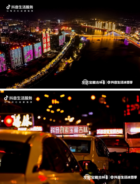 借助短視頻的傳播,吉林震撼的冬季霧凇景觀被更多網(wǎng)友看到。進入12月,抖音生活服務在吉林市阿什小霧凇島落地“登島趕大吉”活動,帶動小霧凇島搜索量創(chuàng)冬季新高,吉林市抖音團購搜索量顯著增長。系列活動得到吉林市委市政府的大力支持。華燈初上,吉林市松花江畔的地標樓體上燈光閃爍著“抖音搜索,寶藏吉林”字樣。全市穿梭街巷的數(shù)千輛出租車車頂燈箱,也在提醒本地市民及異地游客關注“發(fā)現(xiàn)寶藏吉林”活動。