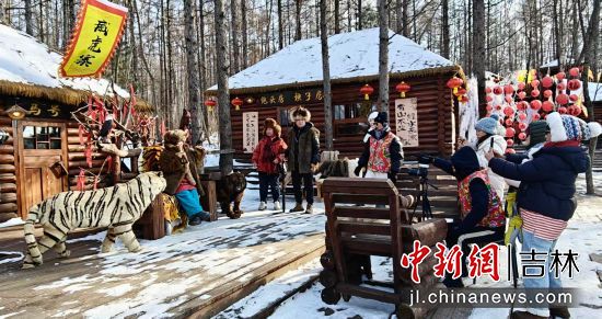 愛心玫瑰與雪人谷成為打卡熱點(diǎn),百余個(gè)創(chuàng)意雪人錯(cuò)落分布,雪雕玫瑰形態(tài)各異,游客爭相合影。關(guān)東文化園威虎山土匪寨角色扮演區(qū)人氣爆棚,游客換上土匪服飾,手持道具槍模擬“打土匪”互動(dòng),笑聲與吶喊聲中重現(xiàn)歷史場景!斑@比單純滑雪更有意思!”游客王先生興奮地表示,“土匪寨體驗(yàn)讓我仿佛穿越回關(guān)東時(shí)代,文化元素讓冰雪活動(dòng)更鮮活!