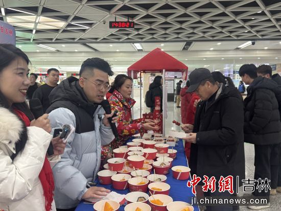 在出站口,《大東北我的家鄉(xiāng)》音樂響起,游客剛下火車便被充滿東北風情的快閃表演吸引,免費品嘗的凍柿子、凍梨、冰糖葫蘆,免費領取綠園文旅游玩攻略和多種購物優(yōu)惠券,讓全國各地的游客剛踏上東北的土地,就感受到的東北人的熱情。