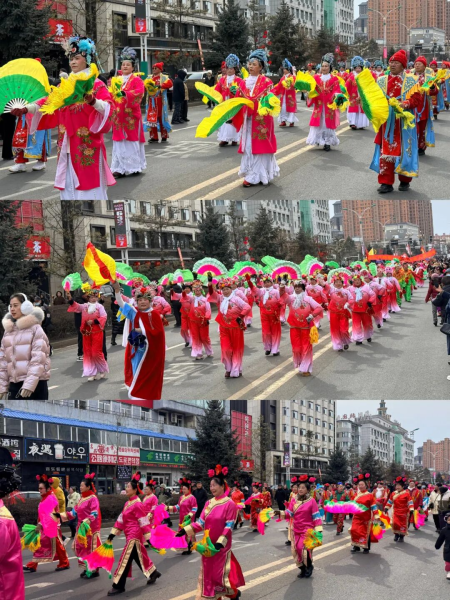 20支秧歌隊伍從大劇院出發(fā),沿南湖大街至敖東大街與長白路交匯處行進展演,傳統(tǒng)東北大秧歌、滿族秧歌輪番登場,踩高蹺、舞龍舞獅……各類非遺絕活悉數(shù)展現(xiàn)。樂隊嗩吶與鑼鼓镲交織出快慢錯落的傳統(tǒng)曲牌,演員們將秧歌的精髓演繹得淋漓盡致,成為街頭流動的風景線,隊伍一路載歌載舞,所到之處歡呼不斷,喜慶氛圍遍布敦城街巷,生動展現(xiàn)“吉祥敦化”的和諧盛景。
