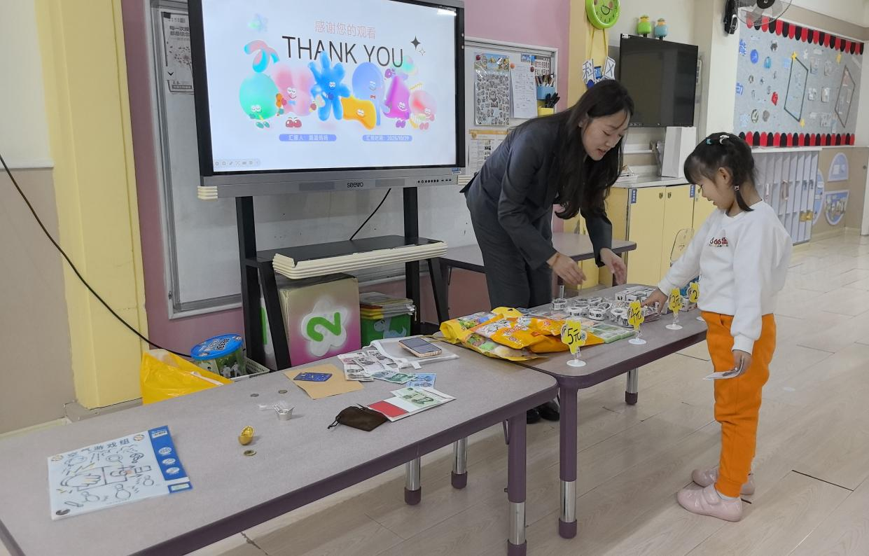 講解“錢幣發(fā)展史”時(shí),工作人員沒有單純說教,而是先拿出提前準(zhǔn)備的貝殼、銅錢模型,笑著問小朋友:“大家摸摸看,這些‘古代的錢’和我們現(xiàn)在用的紙幣,摸起來感覺一樣嗎?”孩子們立刻圍攏過來,輪流接過模型,有的說“貝殼滑滑的,像小扇子”,有的舉著銅錢喊“這個(gè)中間有洞,能穿繩子!”。工作人員順著孩子們的發(fā)現(xiàn)繼續(xù)引導(dǎo):“以前沒有手機(jī)支付,人們就用貝殼、銅錢買東西,現(xiàn)在我們用紙幣、刷手機(jī)付錢,但不管哪種方式,都要好好保護(hù)自己的‘錢’哦!陛p松地觀察與對(duì)話,讓孩子們自然理解了貨幣的變化。