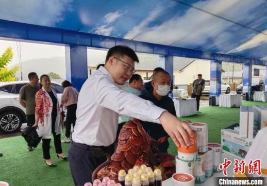 8月24日,正在吉林長春舉行的第十四屆中國—東北亞博覽會上,臺灣展商正向市民介紹商品。劉棟 攝
