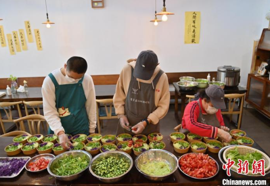 中新網(wǎng)長春5月8日電 (李彥國)8日的吉林長春陰雨綿綿,不過這并未影響到皓皓和伙伴們的工作熱情,切菜、擺盤、備餐……3名心智障礙青年在此開啟每天的“社會實(shí)踐課”,通過幫廚感知、融入社會。