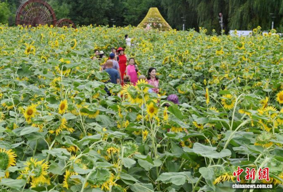 8月25日,長(zhǎng)春市的長(zhǎng)春公園內(nèi),5000平方米的向日葵盛開,吸引了大批游客前來(lái)觀賞。當(dāng)天,“秋之韻·葵心向陽(yáng)”秋季系列活動(dòng)拉開帷幕。中新社記者 張瑤 攝