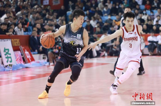 3月15日晚,吉林長(zhǎng)春,吉林隊(duì)姜偉澤(左一)持球進(jìn)攻。 中新社記者 張瑤 攝
