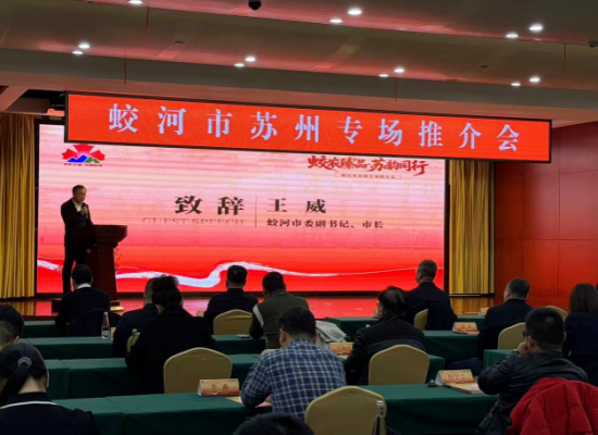 蛟河市委副書記、市長王威,副市長陳連波,吉林市商務(wù)局副局長車永光,蘇州軌道交通集團(tuán)市場營銷總監(jiān)、資產(chǎn)公司副董事長張道清,總經(jīng)理徐紅軍,江蘇省吉林商會、蘇州市吉林商會會長惠飛及在蘇企業(yè)家代表參加推介會。