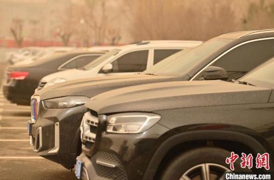車輛在大風(fēng)沙塵中行駛。張瑤 攝