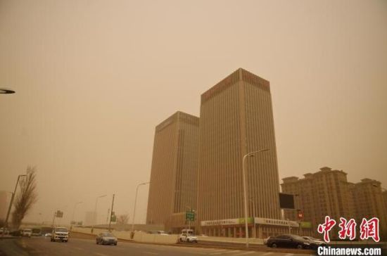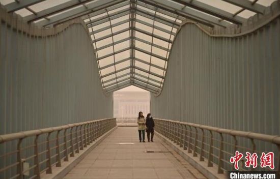 市民在大風(fēng)沙塵中出行。張瑤 攝