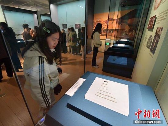 市民在觀賞新石器時(shí)代良渚文化玉錐形器。