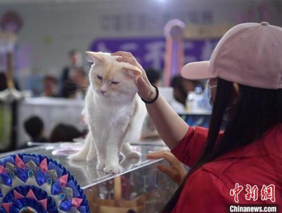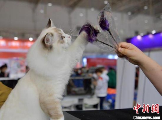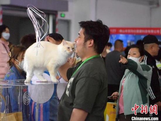 市民在和“喵星人”互動。市民在和“喵星人”互動。寵物展上的貓咪十分可愛。 市民在和“喵星人”互動。 市民在和“喵星人”互動!