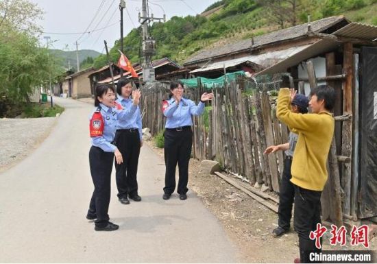 “女子警務(wù)團(tuán)”來到村里走訪。崔藝琳(右一)說,轄區(qū)里很多村子道路難行,但從沒阻止她們前行的腳步。 張瑤 攝
