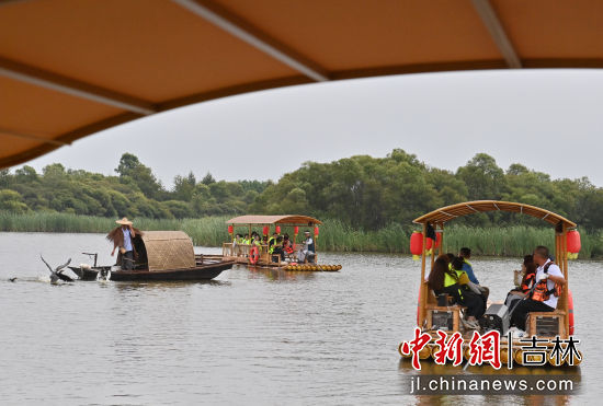 吉林長春:游客泛舟賞荷體驗“清涼一夏”