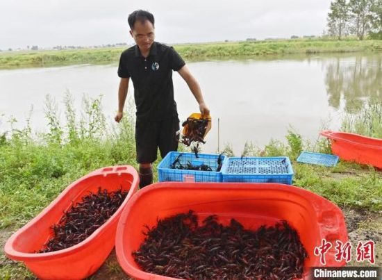 8月22日,在吉林省伊通縣三聯(lián)水庫(kù)灌區(qū)的小龍蝦苗培育基地,工作人員在展示小龍蝦。該基地科研團(tuán)隊(duì)在成功培育出了適應(yīng)北方寒地環(huán)境小龍蝦苗的同時(shí),還創(chuàng)新探索出稻田養(yǎng)殖蝦蟹新模式,通過(guò)生態(tài)良性循環(huán)提升稻米品質(zhì),也能更好地保護(hù)和利用黑土地。中新社記者 張瑤 攝