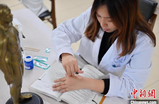 10月23日,吉林長春,林玉花在練習針灸。來自泰國的林玉花是長春中醫(yī)藥大學中醫(yī)內(nèi)科學的研究生,經(jīng)過一年多的深造,她越發(fā)愛上博大精深的中醫(yī)和中國傳統(tǒng)文化。林玉花說,她希望把在中國學到的中醫(yī)技藝帶回家,將來開一家中醫(yī)館。中新社記者 張瑤 攝