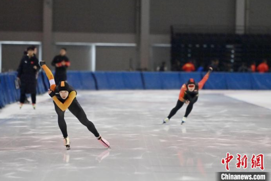 11月15日,2024-2025年度吉林省青少年速度滑冰錦標賽在吉林省速滑館開賽,來自全省各地500余名運動員參賽。該錦標賽是吉林省青少年A級賽事。為期三天的時間里,運動員們按照年齡分成4個組別,圍繞54個競賽小項進行比拼。圖為運動員在激烈比拼。中新社記者 張瑤 攝