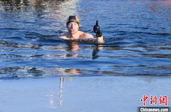 吉林長春:中外冬泳愛好者冰湖暢游迎新年