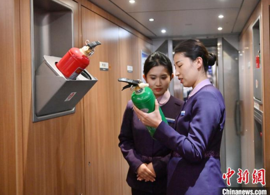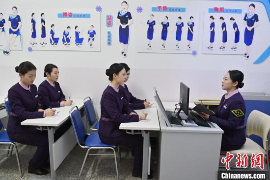 1月7日,吉林長春,“動姐”在進(jìn)行安全知識培訓(xùn)。春運(yùn)臨近,為提升服務(wù)品質(zhì),沈陽局集團(tuán)公司長春客運(yùn)段動車一隊(duì)的乘務(wù)員們利用業(yè)余時間開展基礎(chǔ)禮儀、職業(yè)形象、服務(wù)技巧等內(nèi)容的培訓(xùn)。中新社記者 張瑤 攝