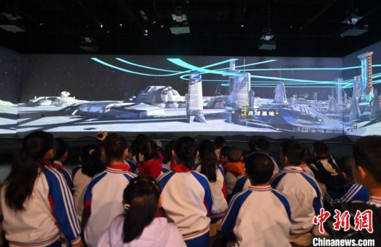 4月9日,吉林長春,小朋友在參觀航天服模型。中國航天日臨近,不少小朋友來到筑夢星辰(長春)航天科教文旅館,通過互動體驗學(xué)習(xí)航天知識,探索宇宙的奧秘。中新社記者 張瑤 攝