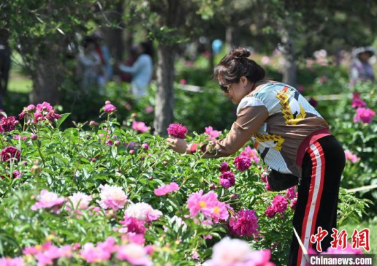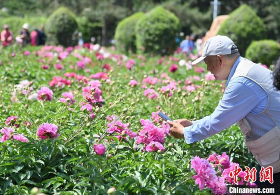 6月11日,在長春市長春公園內(nèi),六萬余株芍藥花競相綻放,吸引了眾多游客前來觀賞。中新社記者 張瑤 攝