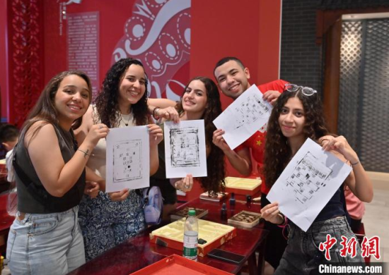 6月24日,吉林長春,埃及青年體驗活字印刷術。當天,來自美國、埃及、印度尼西亞等國家的青年在長春體驗泥塑、活字印刷術,參觀一汽紅旗文化展館,近距離感受中國文化的魅力。中新社記者 張瑤 攝