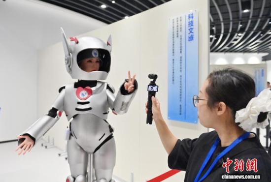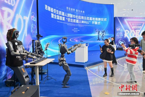 9月30日,吉林長春,參觀者觀看科技文旅機器人。當天,吉林省仿生機器人創(chuàng)新中心應(yīng)用示范基地于吉林省長春市揭牌,全國首家“仿生機器人MALL”也在同期開幕。該基地集展示、體驗、科普、銷售等功能于一體,致力于打造沉浸式科技消費新地標。中新社記者 張瑤 攝