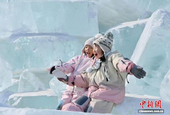 2月9日,在長春凈月潭國家森林公園內(nèi),由水庫天然冰塊堆砌而成的“藍冰”景觀,吸引市民打卡拍照!八{冰”是指致密堅硬的冰,因冰內(nèi)部空氣被擠掉而變得晶瑩透徹,這時陽光中波長較短的藍光被致密堅厚的冰層散射,冰塊便呈現(xiàn)出水晶般美麗的藍色。中新社記者 張瑤 攝
