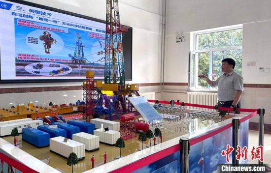 劉寶昌介紹“地殼一號”萬米鉆機。 郭佳 攝