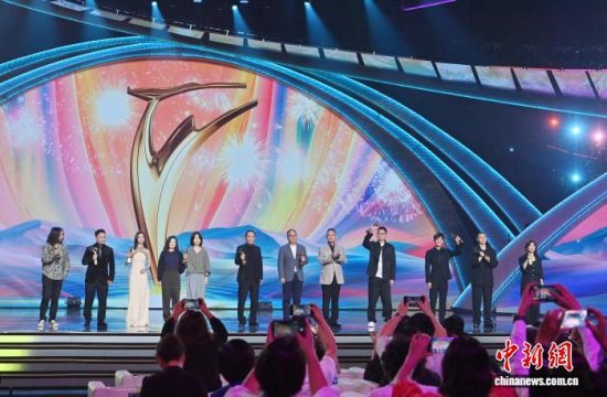 2024年9月1日晚,第十九屆中國長春電影節(jié)閉幕式上,獲獎?wù)呒w合影留念。(資料圖) 中新社記者 張瑤 攝