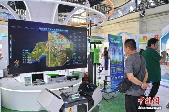 參觀者在參觀長春國家農(nóng)高區(qū)未來農(nóng)場設(shè)計(jì)藍(lán)圖。 張瑤 攝